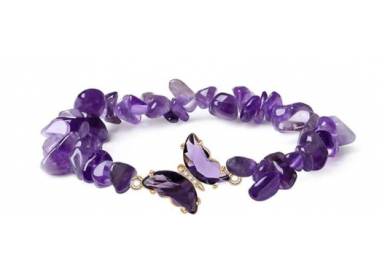 Lasciati avvolgere dalla serenità dell’ametista con questo bracciale elegante e spirituale, impreziosito da un elemento decorativo centrale a forma di farfalla, simbolo di trasformazione e libertà interiore.
