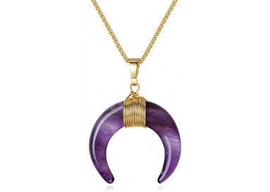 Siate unici, indossate il ciondolo di ametista a forma di mezzaluna rovesciata e godete dei suoi benefici in ogni momento della vostra vita.