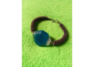 La sua caratteristica distintiva è l'inclusione di una splendida pietra esagonale di agata blu al centro del design e la presenza di un pratico gancio di chiusura realizzato anch'esso in rame.