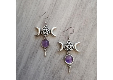 Orecchini in Ametista | Triplice Luna e Pentacolo