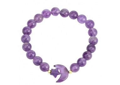Le pietre di ametista, con la loro profonda tonalità viola, da sempre portatrici di significati magici, donano al bracciale una bellezza senza tempo. Ma il vero tocco magico risiede nei due charm distintivi a forma di luna e stella, anch'essi splendidamente realizzati in ametista.