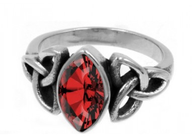 ✔ Design raffinato: Doppia triquetra scolpita con cura nei dettagli e pietra rossa centrale.
