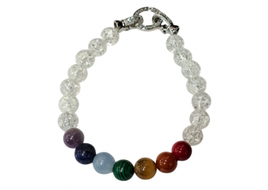Il bracciale dei 7 Chakra, realizzato con pietre selezionate per la loro affinità con i centri energetici del corpo, è un prezioso alleato per ritrovare equilibrio e armonia interiore. Ogni pietra corrisponde a un chakra specifico, favorendo il flusso energetico e promuovendo il benessere globale. Il Quarzo Ialino Cracked, posizionato come connettore, amplifica e unisce le energie, potenziando l'efficacia dell’intero bracciale.