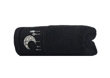 Aggiungi un tocco di raffinatezza e mistero al tuo bagno o alla tua routine quotidiana con questo asciugamano nero unico nel suo genere. Realizzato in un tessuto morbido e resistente, è impreziosito da una rappresentazione affascinante della luna, simbolo di calma, trasformazione e bellezza universale.
