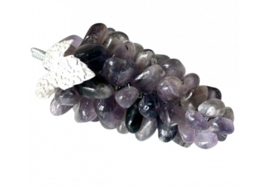 L’ametista è una pietra famosa per il suo potere protettivo e purificante. Si dice che favorisca la chiarezza mentale, l’equilibrio emotivo e la connessione con il proprio intuito. I chicchi di ametista in questo grappolo irradiano vibrazioni che aiutano a dissipare l’energia negativa, favorendo uno stato di calma e introspezione. È una pietra che guida verso una maggiore consapevolezza, rendendo questo oggetto non solo bello, ma anche profondamente benefico per l’anima.