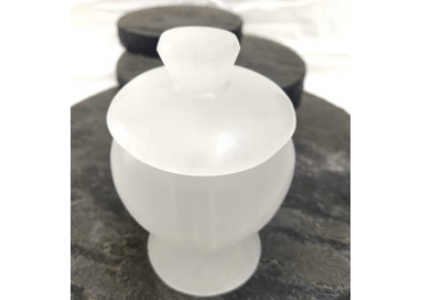 custodire piccoli oggetti sacri, amuleti o talismani, mantenendoli avvolti dalla vibrazione della selenite.