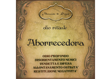 L’Olio Aborrecedora è utilizzato in rituali per "restituire" simbolicamente l’energia negativa ricevuta. Può essere impiegato per punire una persona che ha tradito, ferito o approfittato di te, creando per lei ostacoli e disordine nella vita.