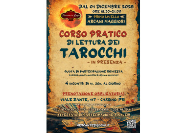 Il percorso prevede 4 incontri totali, con cadenza settimanale (lunedì) 1 – 8 – 15 – 22 dicembre , dalle 19:30 alle 21:00, a Cassino (FR), presso la sede operativa dell’Associazione Culturale Mercante di Sogni.