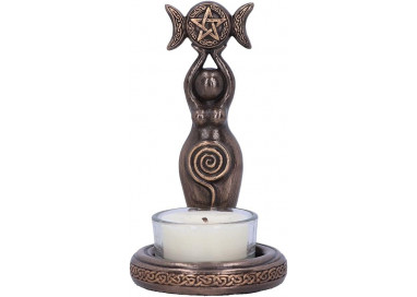 Il Triple Moon Goddess Candle Holder è un elegante portacandele spirituale raffigurante la Dea della Triplice Luna, potente emblema dell’eterno femminino. La figura emerge armoniosamente da una base rotonda, evocando stabilità, connessione e ciclicità.