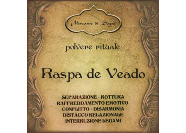 Raspa de Veado, traducibile dal portoghese come “Raschiatura di Cervo” (nome simbolico che non indica ingredienti letterali), è una polvere rituale impiegata nelle pratiche di magia popolare per indurre distacco, freddezza e deterioramento nei rapporti sentimentali. Il suo utilizzo è legato a lavori di rottura, in cui si desidera indebolire un legame affettivo fino alla separazione.