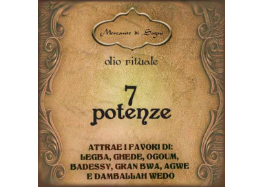 Le 7potenze rappresentano le divinità principali del pantheon voodoo: Legba, Ghede, Ogou, Badessy, Gran Bwa, Agwe e Damballah Wedo. Ogni potenza rappresenta un aspetto diverso della vita umana e dell'universo, e l'olio delle sette potenze viene spesso utilizzato per amplificare la forza di un incantesimo o per attirare l'attenzione di queste divinità.