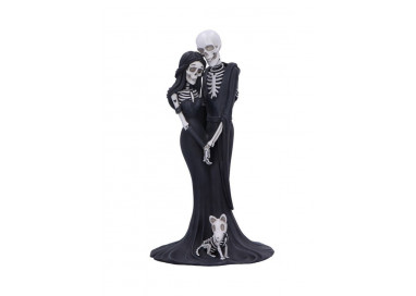 La statuetta Eternal Skeleton Companion di Nemesis Now è un potente simbolo di amore eterno e devozione senza tempo. Raffigura due amanti scheletrici stretti in un abbraccio sincero, accompagnati dal loro fedele cane scheletro, a rappresentare un legame che continua oltre la mortalità. Un’opera intensa, capace di emozionare e affascinare.