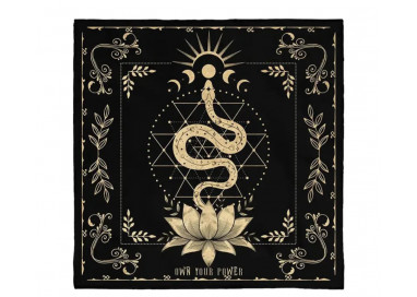 Telo "Own Your Power" con Serpente e Loto, 49x49 | Nero e Oro